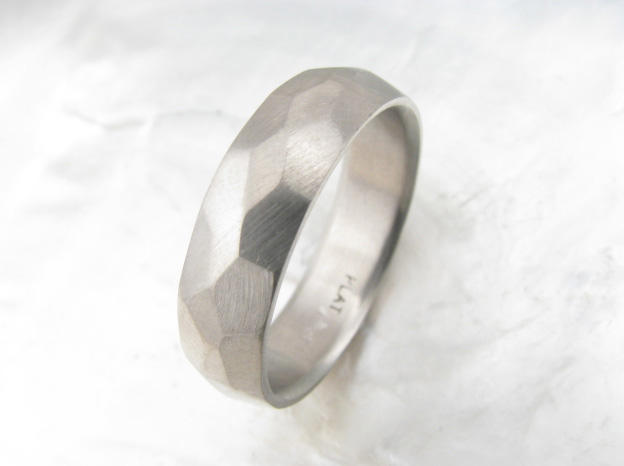 The raw finish is especially nice on palladium and platinum, and is shown in the picture to the left on a faceted platinum band.